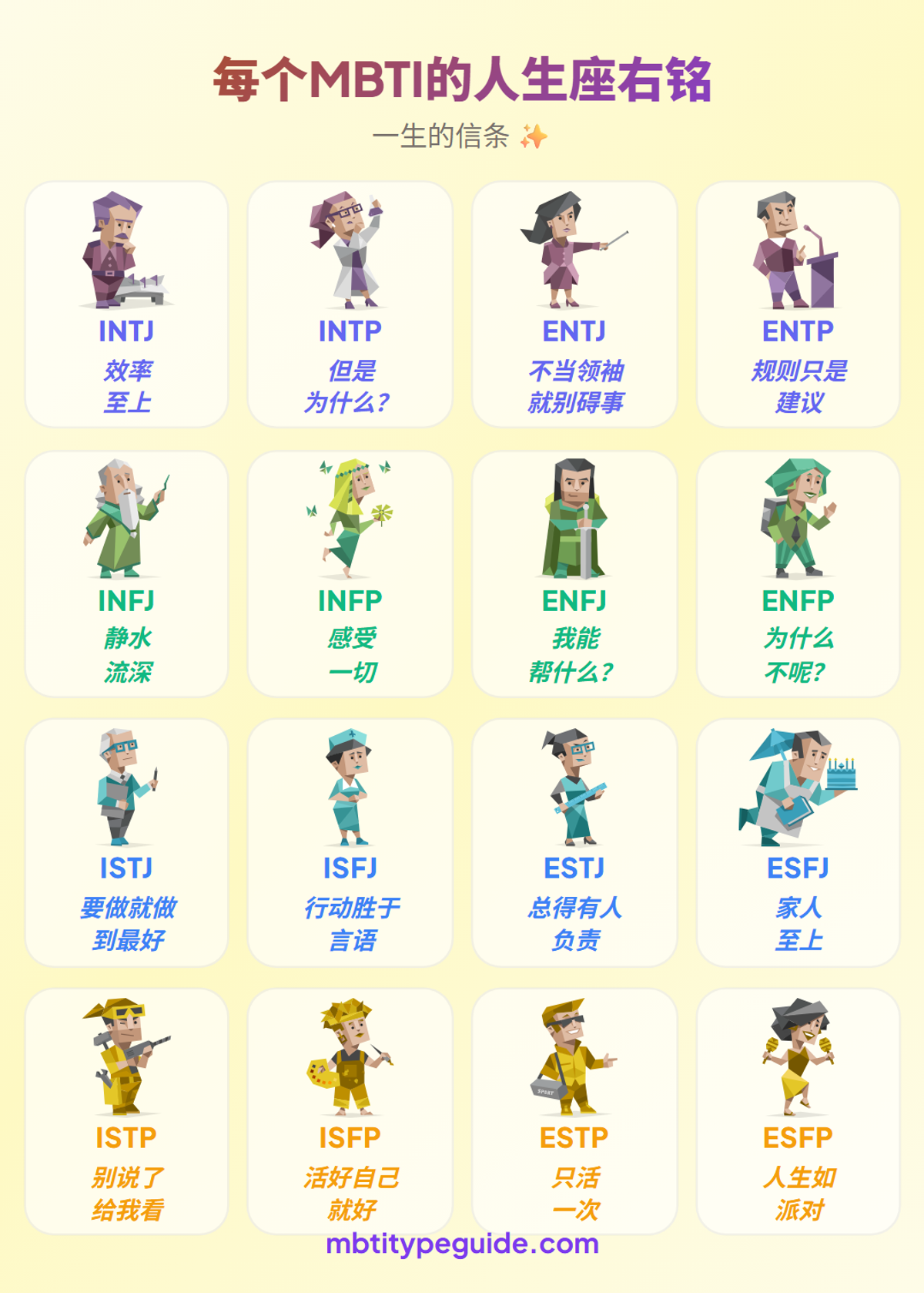 每种MBTI类型的人生信条