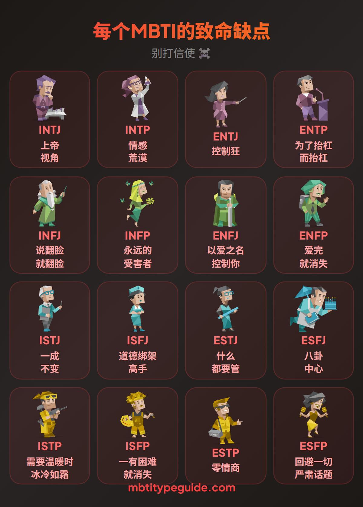 郑重声明:这只是为了好玩。我们爱所有十六种类型(包括那些自以为高人一等的)。现在,开始吐槽吧!